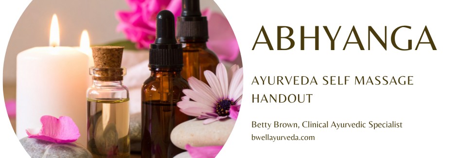 One vata balancing  self-care ritual I want to highlight is the practice of Ayurvedic self-massage called Abhyanga.  Warm oil is used to bring softness and grounding to balance vata dosha.  And did you know the word for oil in Sanskrit ( the language of Ayurveda) is sneha, also means love ?  As you practice abhyanga, you are bathing yourself in love, nourishing your mind, body and heart.