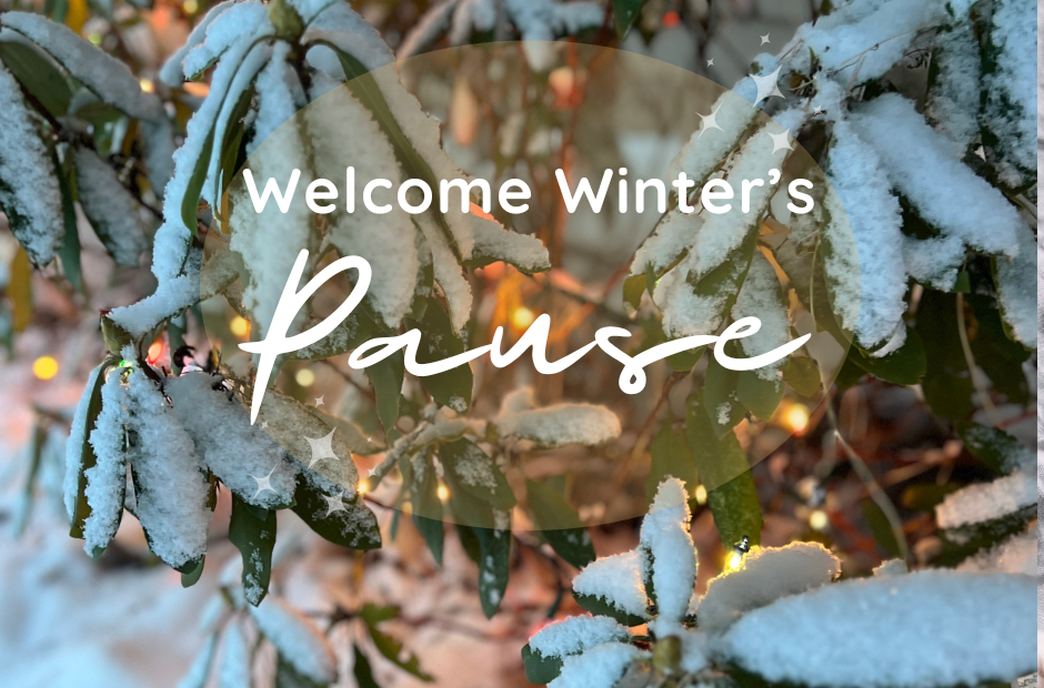 The other day, we had our first real snowfall, ushering in winter.  There is stillness in the air as a blanket of snow covers the ground.  Winter is here and mother nature invites us to pause with her.